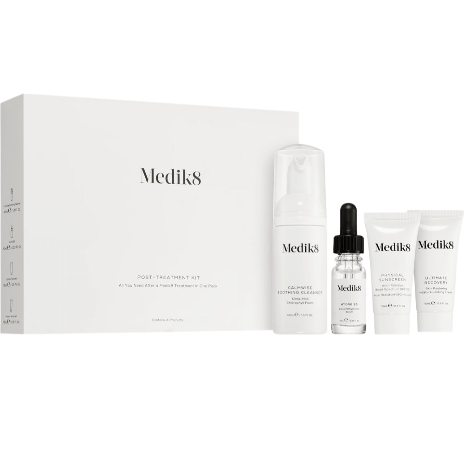 Medik8 Post Treatment Kit – это специально разработанный послепроцедурный восстанавливающий набор, содержащий все необходимые миниатюры средств для успокоения, увлажнения и защиты кожи после агрессивных косметических процедур, таких как пилинги, лазерные обработки или микродермабразия.