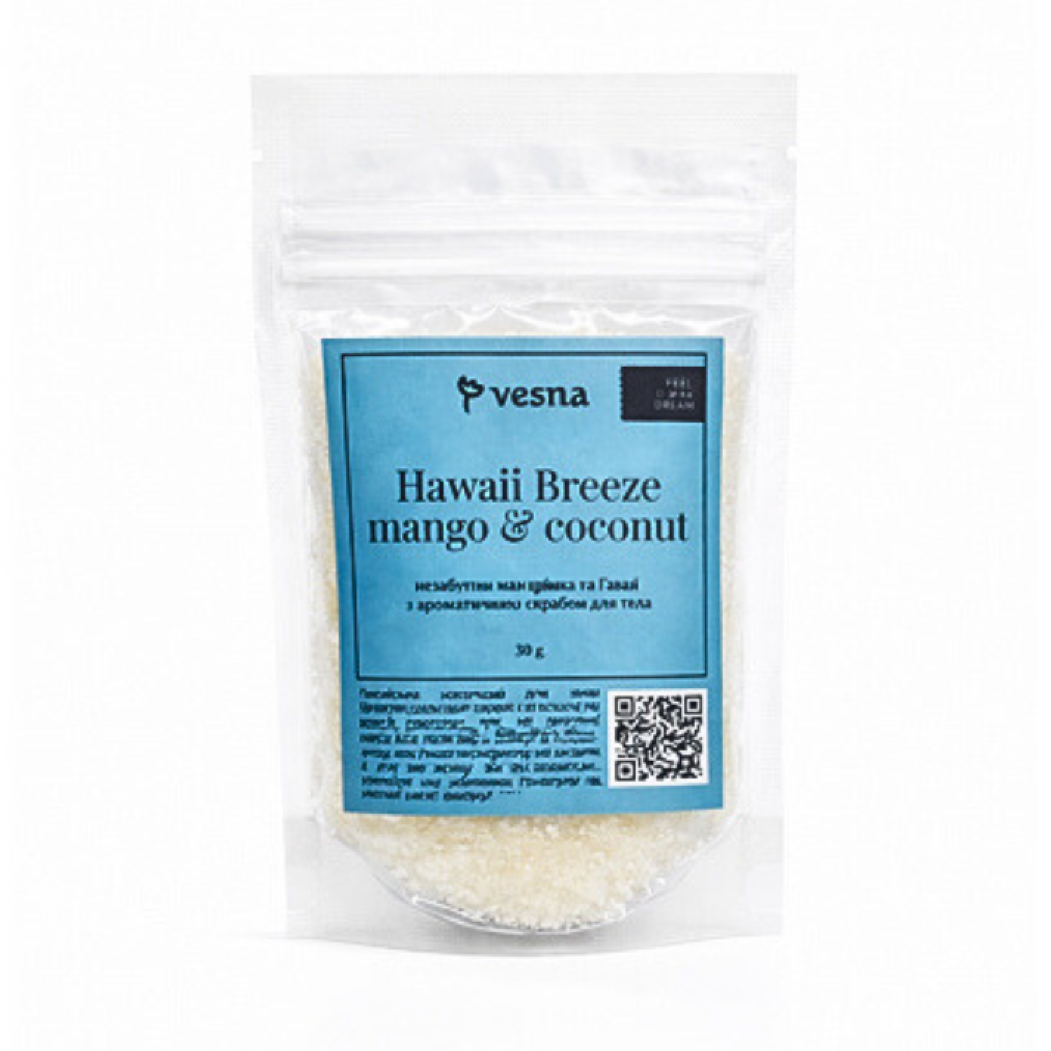 Сахарно-солевой скраб “Гавайский бриз” с манго и кокосом от Vesna — это идеальное средство для ухода за кожей, которое перенесет вас в тропики с первого использования. Объем упаковки составляет 30 g, и этот скраб специально разработан для эффективного эксфолиирования и питания кожи, оставляя ее мягкой и увлажненной.